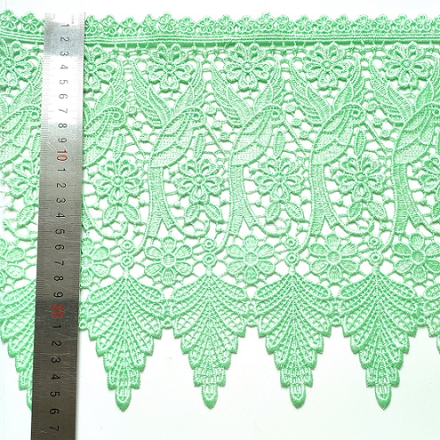 উচ্চ মানের লেইস ফ্যাব্রিক সর্বশেষ ডিজাইন. জল দ্রবণীয় লেইস ফ্যাব্রিক পলিয়েস্টার দিয়ে তৈরি, এটি পোশাক এবং বাড়ির টেক্সটাইল পণ্যগুলিতে ব্যবহার করা যেতে পারে।