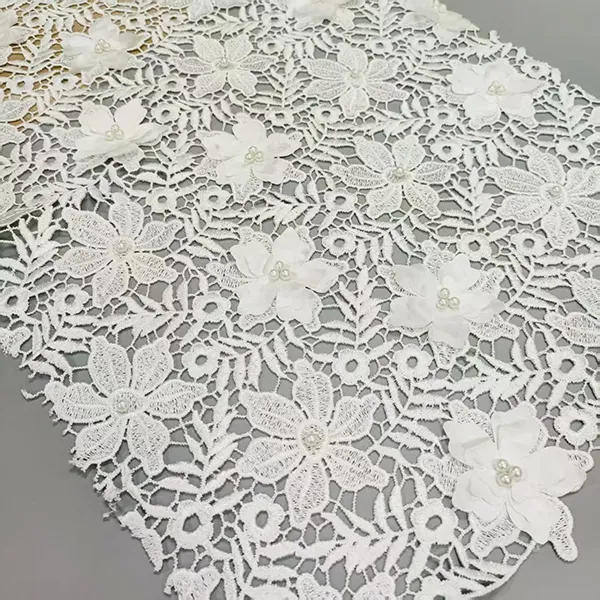 | পণ্যের নাম | 3 ডি ফ্লোরাল লেইস গুইপিউর ফ্যাব্রিক মুক্তো জল সলভব কর্ড এমব্রয়ডারি গুইপিউর লেইস ফ্যাব্রিক | ||