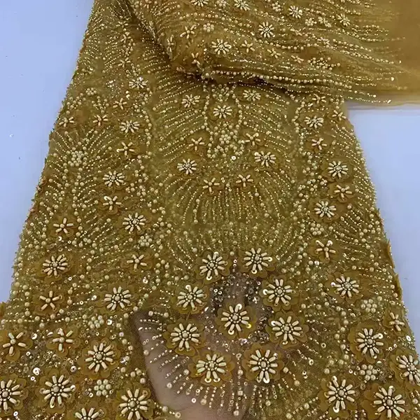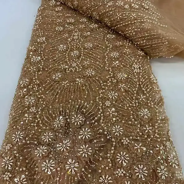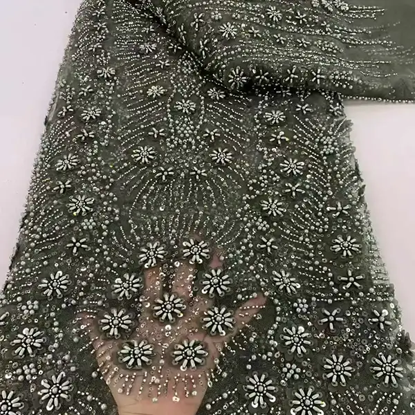 বিলাসবহুল ভারী তৈরি এমব্রয়ডারি টিউলে জপমালা জরি জাল জাল জপমালা ফ্যাব্রিক বৈশিষ্ট্যযুক্ত জটিল জপমালা এবং সূক্ষ্ম জরি। উচ্চ ঘনত্বের সেলাই এবং হাতে প্রয়োগিত জপমালা বিলাসবহুল টেক্সচার তৈরি করে, ব্রাইডাল গাউনগুলির জন্য উপযুক্ত, সন্ধ্যা পরিধান এবং হাট কৌচারের জন্য উপযুক্ত। মার্জিত, উজ্জ্বল এবং প্রিমিয়াম মানের।