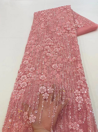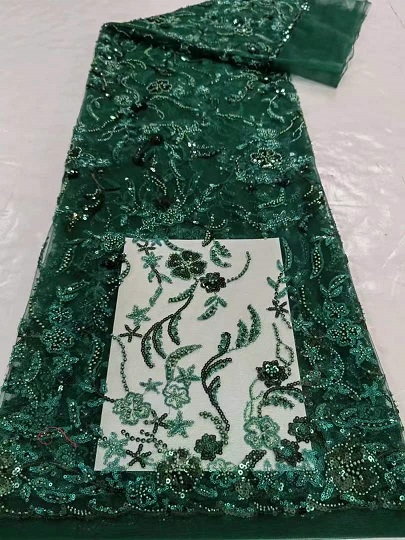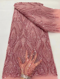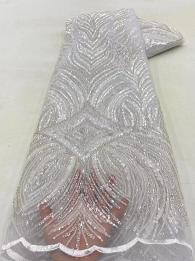 সিকুইনস এবং বিবাহের বিবাহের পোশাকের জন্য মুক্তো সহ লেইস ফ্যাব্রিক
