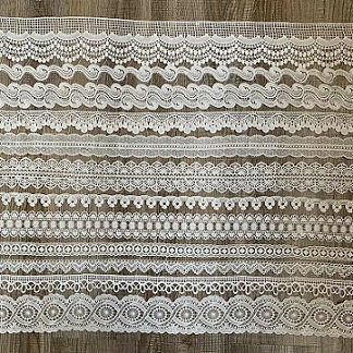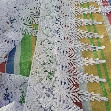 উচ্চ মানের লেইস ফ্যাব্রিক সর্বশেষ ডিজাইন. জল দ্রবণীয় লেইস ফ্যাব্রিক পলিয়েস্টার দিয়ে তৈরি, এটি পোশাক এবং বাড়ির টেক্সটাইল পণ্যগুলিতে ব্যবহার করা যেতে পারে।