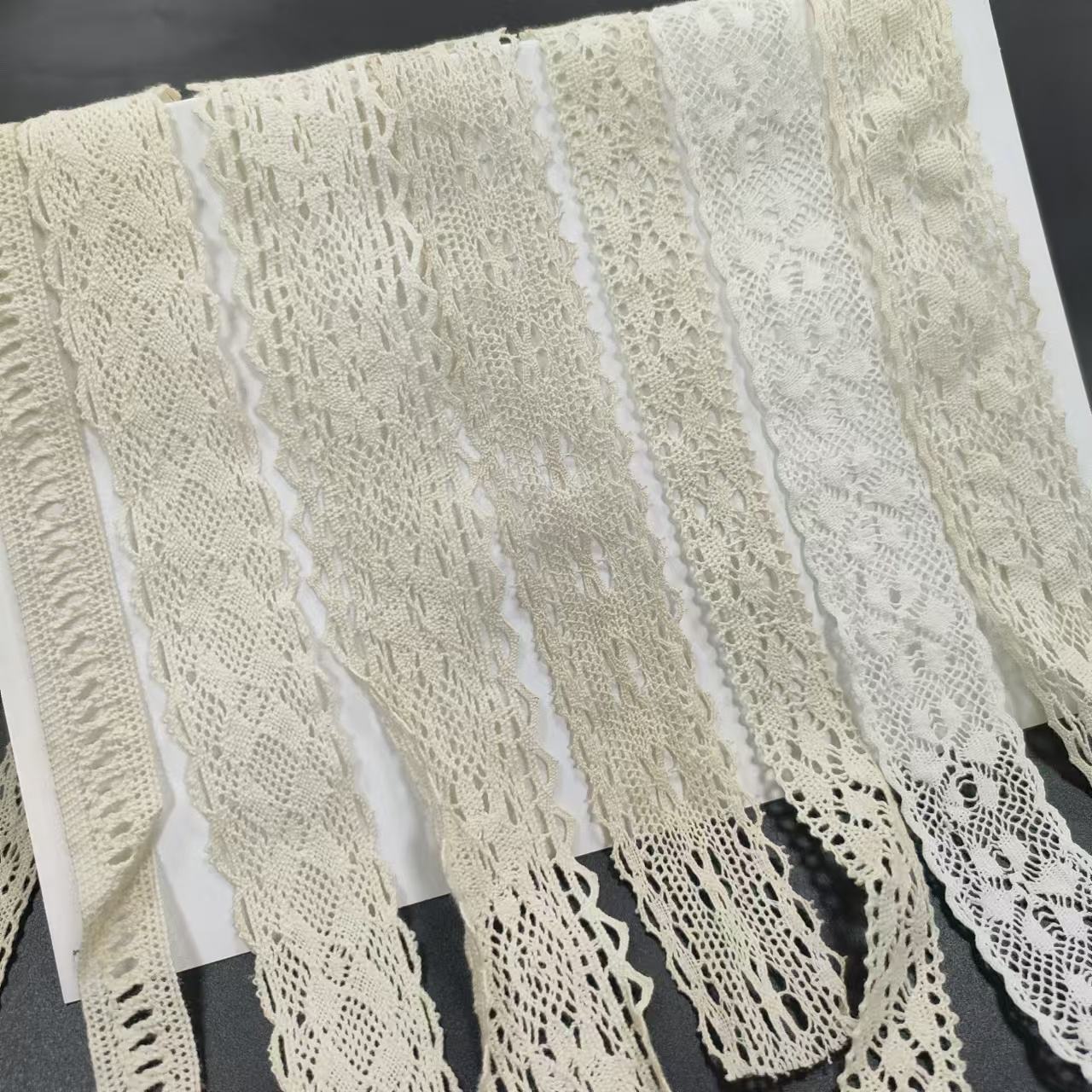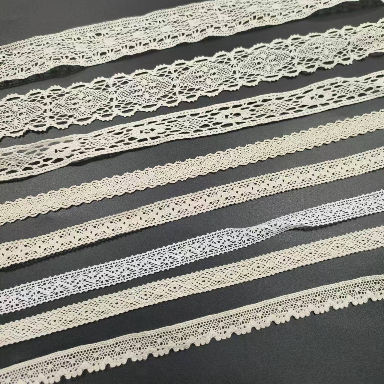 সাদা 100% সংকীর্ণ সুতির জরি ট্রিম ক্রোশেট এমব্রয়ডারি লেইস